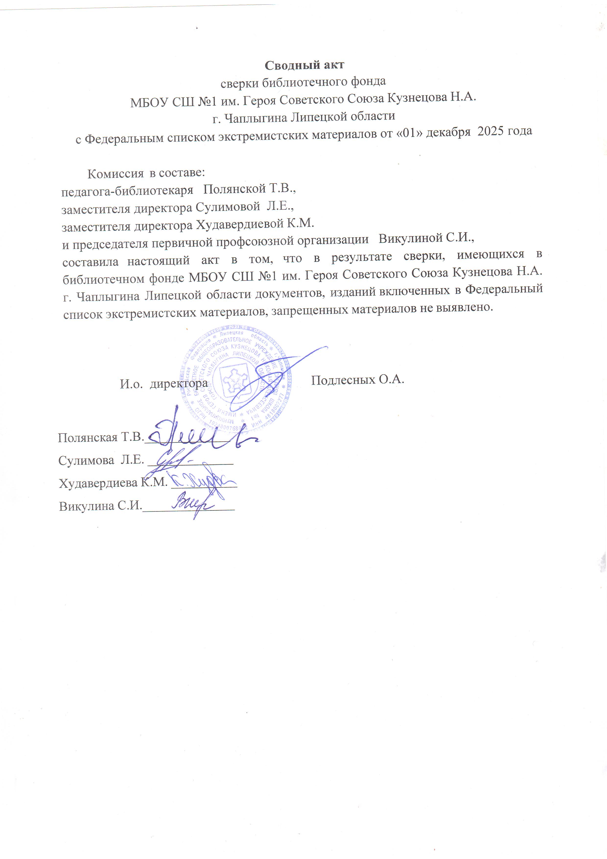 МБОУ СШ №1 им. Героя Советского Союза Кузнецова Н.А. г. Чаплыгина Липецкой области